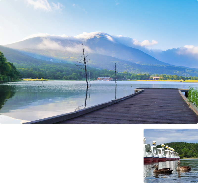 四季折々優美な姿に移ろいゆく「蓼科山」は日本百名山のひとつに数えられ標高の高い山ながら日帰りでも登山が楽しめます。その美しい山容を姿見のように水面に映し出す「女神湖」、ホテルに隣接したゴンドラリフトや車で10分で行ける遊園地など様々なアクティビティと爽快な空気感・非日常の開放感をお愉しみいただける魅力的なエリアです。