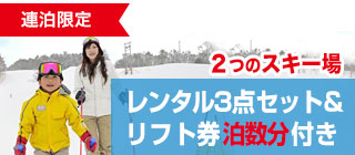 【連泊限定】2つのスキー場共通リフト券+レンタル3点【泊数分】付プラン(2025-2026)